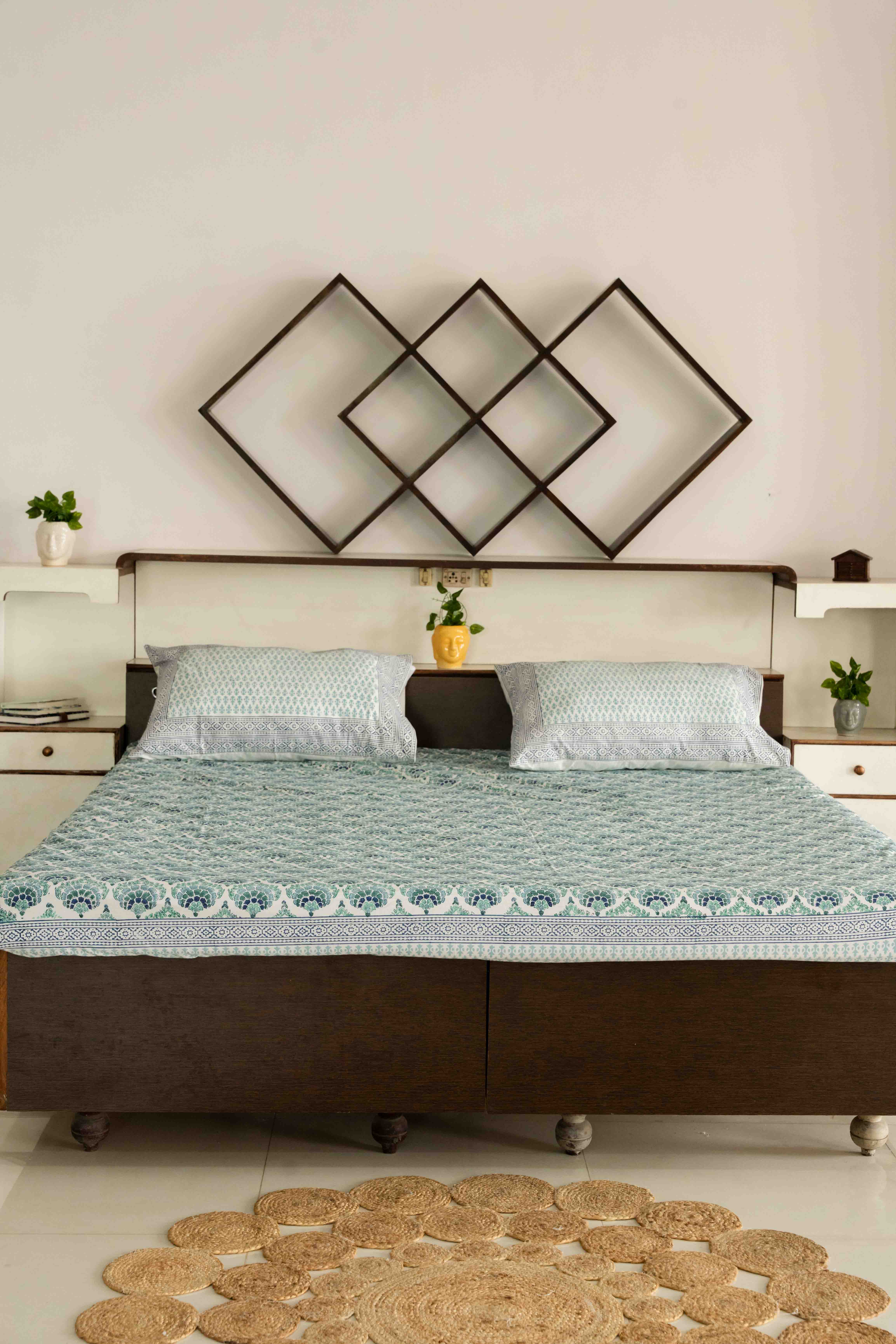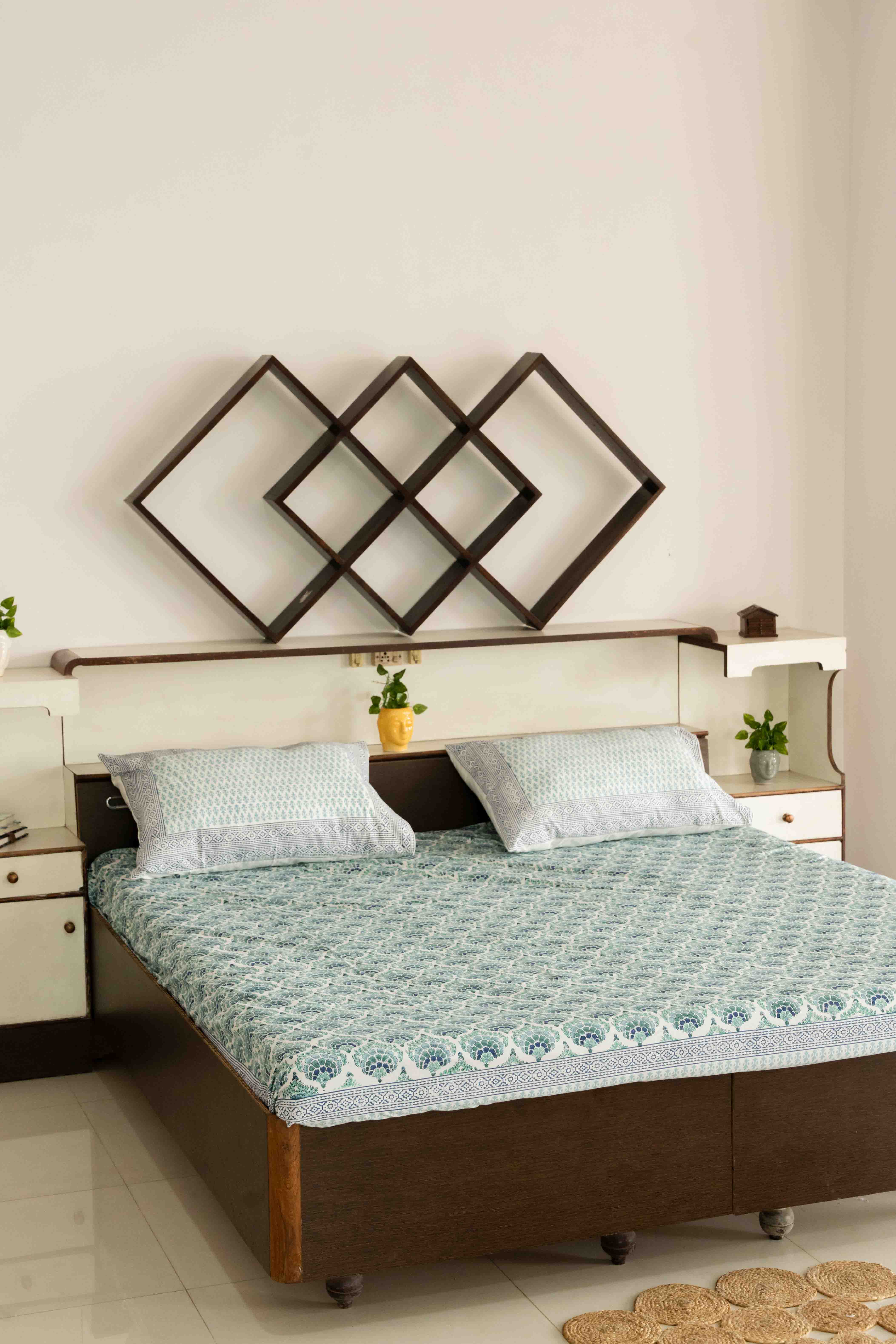 This fitted bed sheet is having beautiful contemporary coral design hand block printed in 100% premium percale cotton fabric. Our bed sheets are individually hand-printed using ancient woodblock printing technique. Delightfully crisp and smooth, these cotton sheets are refreshing additions to a well-curated bed.